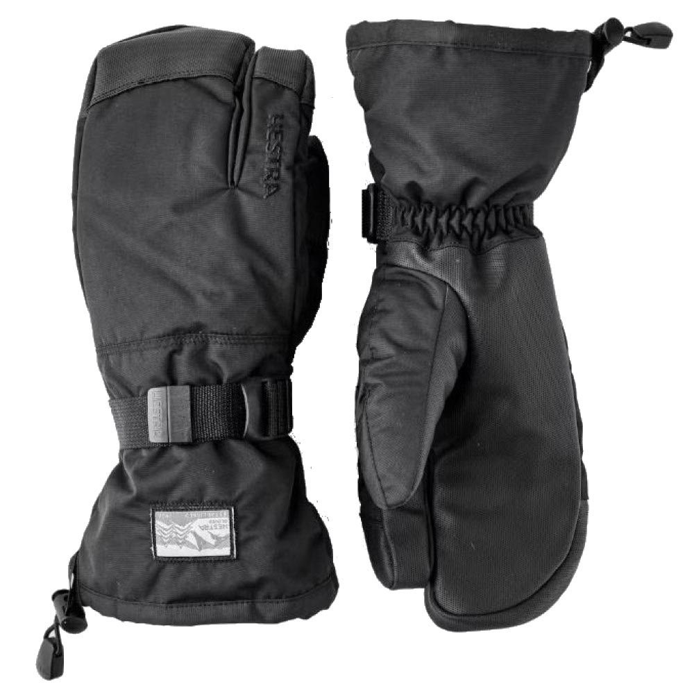 Hestra længere handske til skiløb og snowboarding på kolde vinterdage. Den slidstærke polyamidbaghånd modstår vind og fugt, mens polyurethanhåndfladen giver et godt stanggreb. Den aftagelige fleece liner er nem at vaske og tørre, og den syntetiske isolering både isolerer og leder fugt væk. Fingerspidserne har et Wolf Paw-design uden sømme på de overflader, der er udsat for mest slid. Denne model med tre fingre er ideel, hvis du leder efter en varmere handske, mens du bevarer en vis fingerfærdighed.