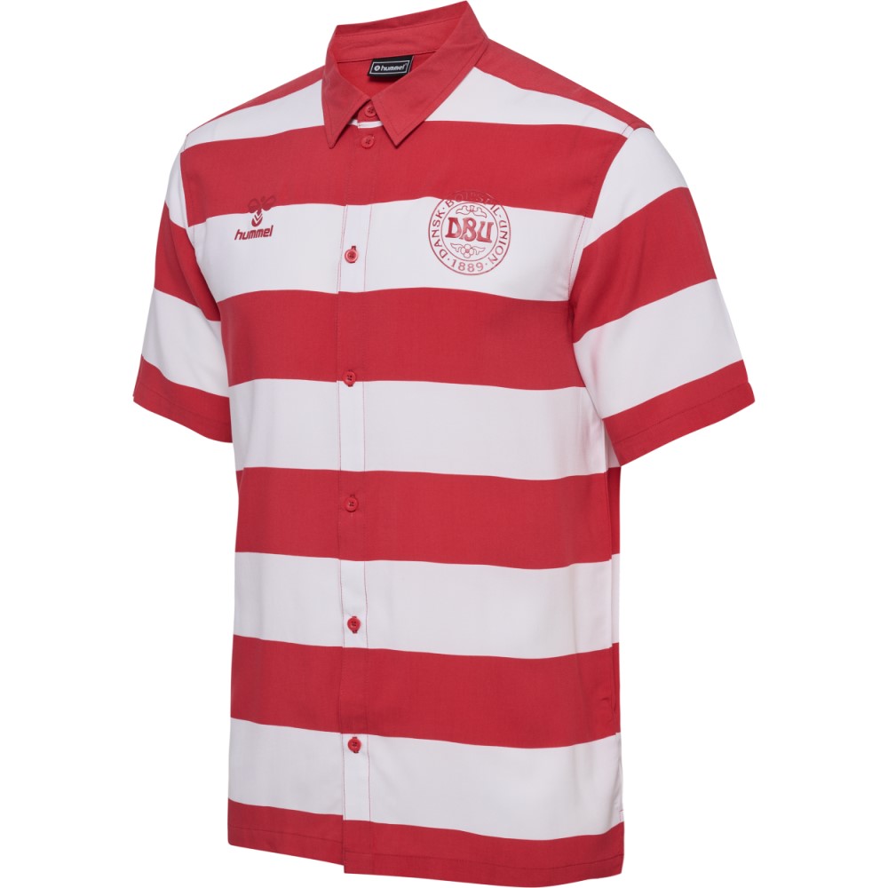 Hummel stribet fan skjorte til voksne. Skjorten har DBU-logo på brystet og er lavet i 100% bomuld.