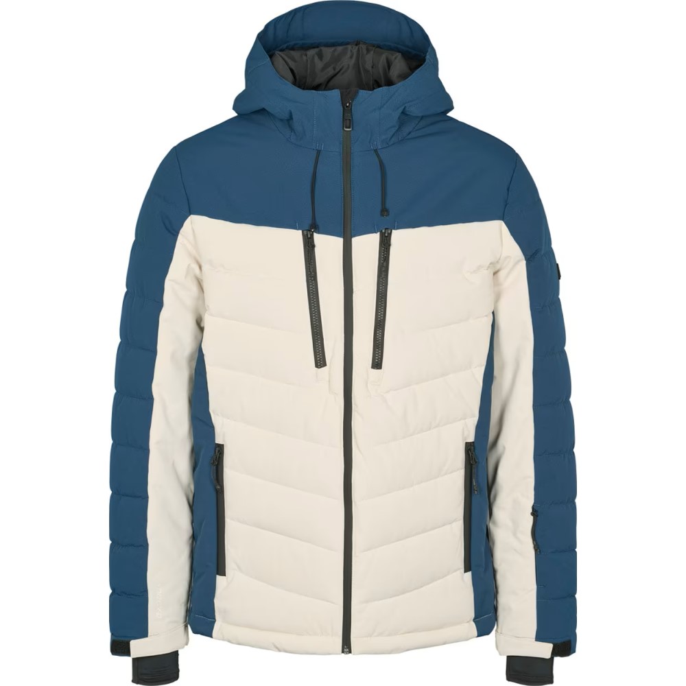 McKinley skijakke med fast hætte, stiklommer, brystlomme og liftkort lomme på ærmet. Jakken kan reguleres med velcro i ærmerne og har ærmeholder til tommeltotten, så ærmerne ikke krybber op ved aktivt brug. Jakken har snefang. Jakken er vind- & vandtæt, samt åndbar.