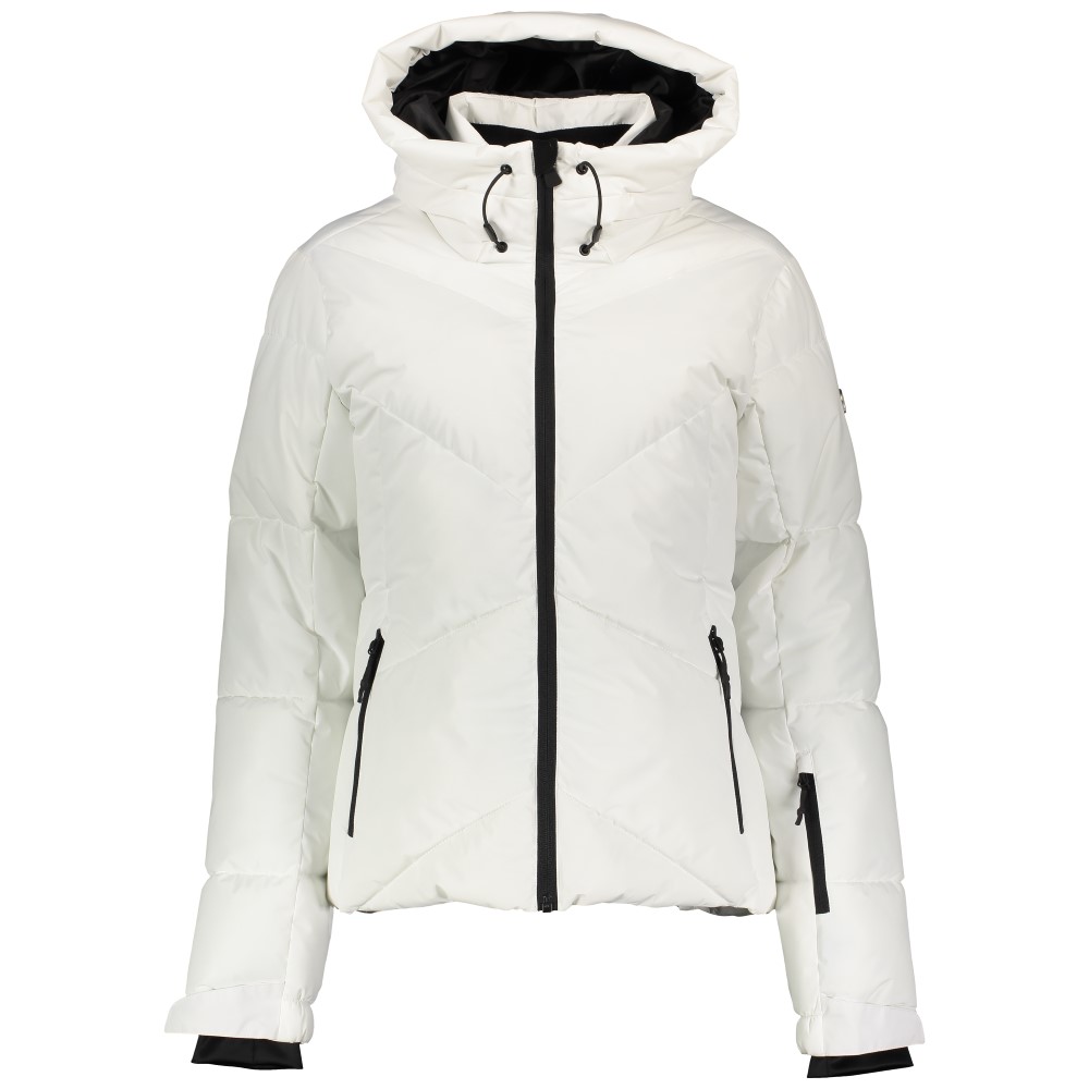 Funktionel skijakke til dame i åndbart materiale, der ligeledes er vandtæt. Jakken har snefang, aftagelig hætte og kan reguleres i håndledet med velcro og snøre i livet.