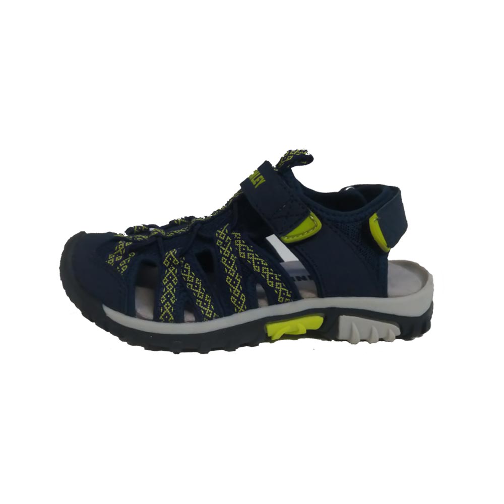 ZigZag børnesandal som kan reguleres over foden med velcro og som er lukket ved tæerne.