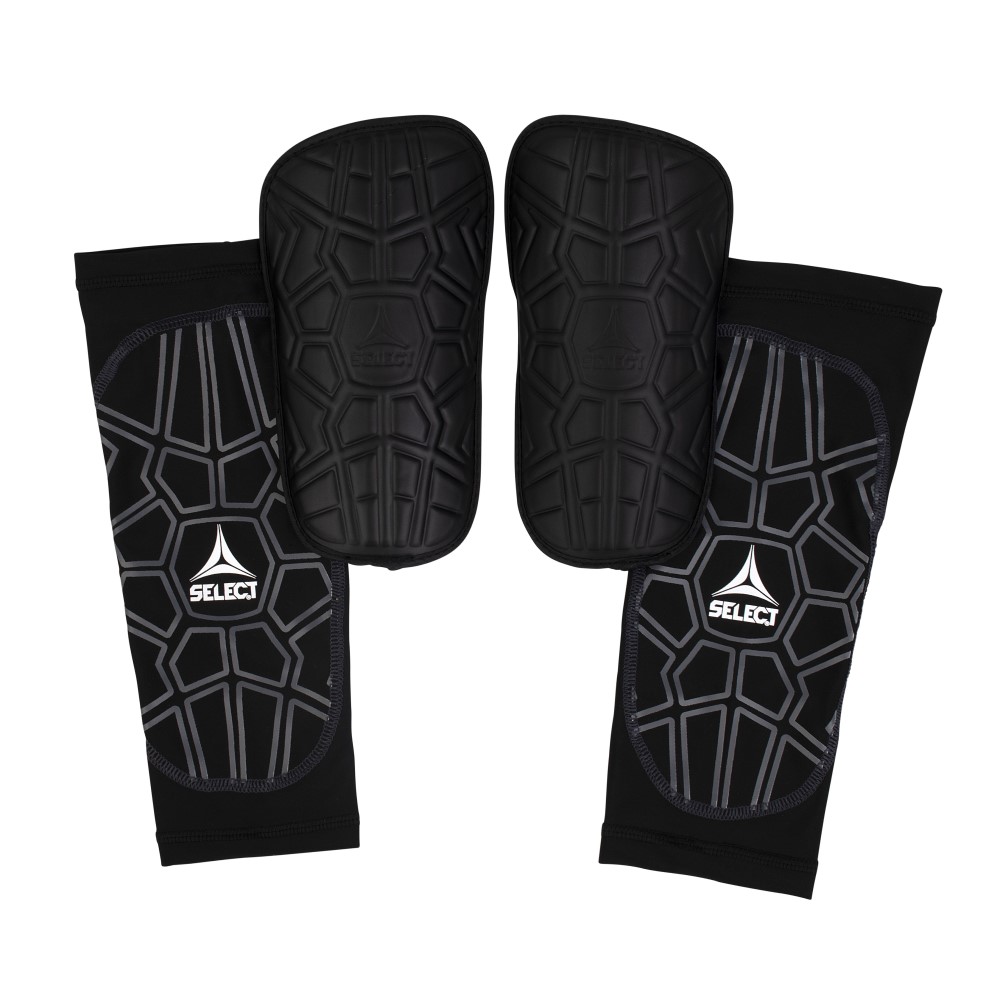 Select benskinner der fastholdes med sok. Benskinnerne er faconsyet, højre og venstre, der giver en mere optimal og komfortabel pasform. Størrelserne (højde):
